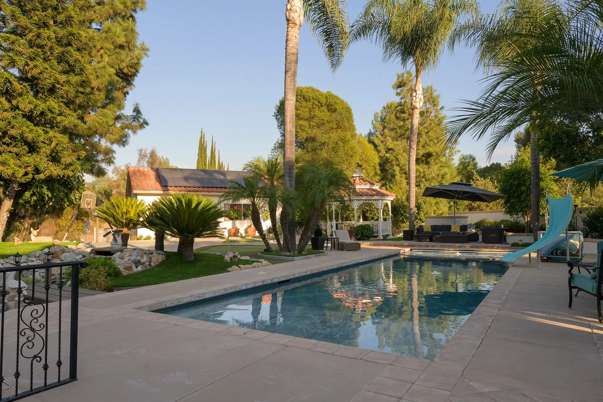Property Features: 2 ponds, pool & jacuzzi, gazebo, basketball court, putting green, multiple seating areas, 2 fire pits, running Creek behind the property